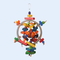 • Interactive Design: A circular frame packed with colorful wooden blocks, beads, and shapes to captivate your bird’s curiosity.