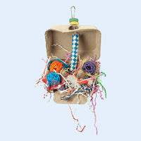 Delight your feathered friend with the Egg Extravaganza Bird Toy, an exciting foraging experience packed with colorful textures and engaging elements. Housed in an eco-friendly egg carton, this toy includes woven balls, crinkle paper, finger traps, and natural components designed to stimulate your bird’s senses and curiosity. Perfect for small to medium-sized birds, this interactive toy encourages play, chewing, and foraging for hours of entertainment.